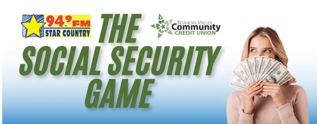 IT’S THE CONTEST YOU WERE BORN TO WIN… THE SOCIAL SECURITY GAME…BROUGHT TO YOU BY ROANOKE VALLEY COMMUNITY CREDIT UNION AND YOUR BIG GIVEAWAY STATION…94.9 STAR COUNTRY!